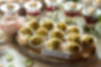 De hapjes kunnen qua kleuren en decoratie vaak aangepast worden aan de bruidstaart of aan het thema van jullie dag.